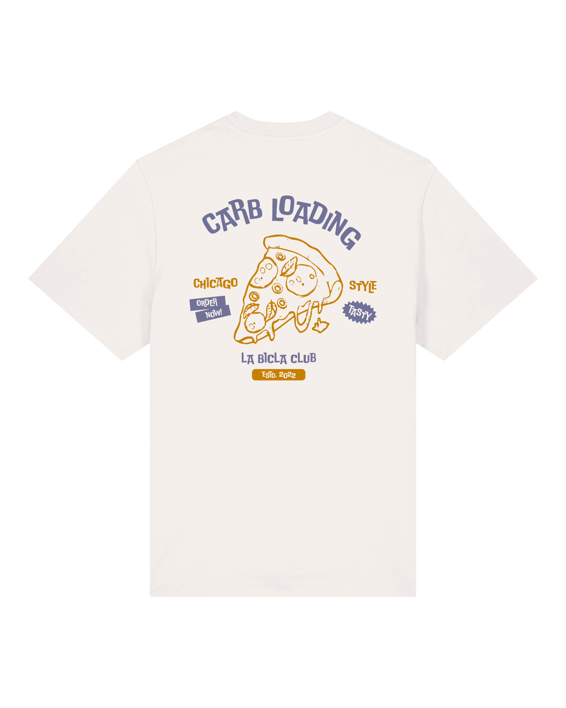 Con el diseño #CarbLoading se rinde homenaje a la carga de carbohidratos. Perfecto para los amantes de la pizza y del ciclismo, simboliza la preparación esencial para cada aventura.